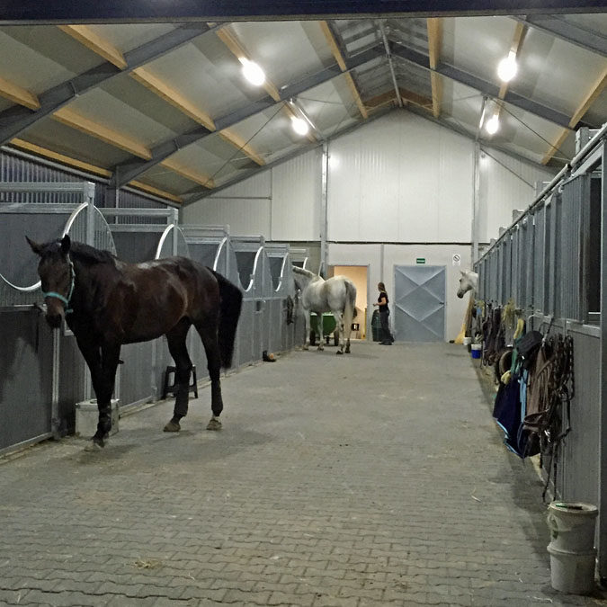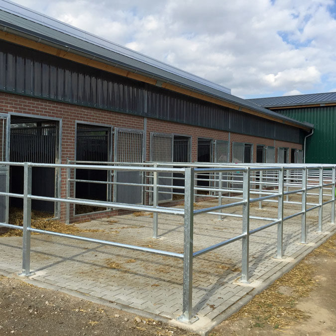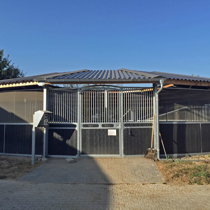 Die Stallungen teilen sich in fünf Boxentrakte auf. Alle Boxen sind mit einem Außenfenster ausgestattet, viele mit einem Einzelpaddock. Die Stalltrakte sind sehr gepflegt, hell und luftig. Insgesamt befinden sich 70 Boxen auf der Anlage. Zusätzlich stehen sechs neu angelegte Sandpaddocks für ausreichend Bewegungsmöglichkeiten bereit.